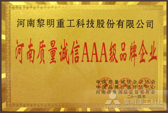 河南質(zhì)量誠信AAA級(jí)品牌企業(yè)