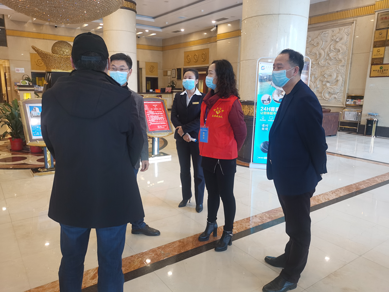 神龍大酒店是衡陽知名四星級酒店。目前,酒店關(guān)閉餐飲娛樂部門,僅留客房部繼續(xù)營業(yè)。為確保防疫復(fù)工順利開展,弘湘國投選派聯(lián)絡(luò)員進(jìn)駐商業(yè)大廈,專門負(fù)責(zé)督導(dǎo)神龍大酒店疫情防控工作。陳新驥在與企業(yè)負(fù)責(zé)人和酒店負(fù)責(zé)人交談了解情況后,針對酒店人員流動性大、構(gòu)成復(fù)雜的特點(diǎn),強(qiáng)調(diào):要重點(diǎn)督促酒店進(jìn)出人員測量體溫、佩戴口罩、衛(wèi)生措施、員工食堂分餐、員工宿舍衛(wèi)生和日常消毒情況。聯(lián)絡(luò)員要每日報告商業(yè)大廈復(fù)工復(fù)產(chǎn)企業(yè)和防疫工作情況,要有紀(jì)律,要勇于擔(dān)當(dāng),為企業(yè)辦實(shí)事,解難事。我們既要打贏疫情防控戰(zhàn),也要幫助保護(hù)好衡陽本地知名企業(yè)。