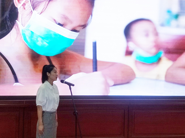 “這是一群無形而又特別的抗疫者,沒有請戰(zhàn)書,沒有紅手印,沒有被表彰,甚至連幾張抗疫的照片都沒有。但是他們的袋子里總懷揣著厚厚的清單,今天是658張”“ 新的路上,是團結(jié)一心、英勇無畏的抗疫精神,也是發(fā)展為上、民生為本的弘湘力量!”比賽現(xiàn)場,黃雅婷緊緊圍繞弘湘戰(zhàn)“疫”這一主題,講述了一個個發(fā)生在弘湘抗疫的感人故事。作為比賽第一位出場的她以真摯的情感、極富感染力的宣講方式以及自然樸實流暢的語言,將“第658份清單”的弘湘戰(zhàn)疫的故事聲情并茂地呈現(xiàn)在各位評委和觀眾面前,用真人、真事、真情表達弘湘人在抗疫戰(zhàn)斗中的不畏困難、勇于擔(dān)當,展現(xiàn)了弘湘集團全體黨員干部在疫情防控中團結(jié)一心,勇往直前的精神風(fēng)貌。