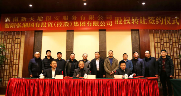 12月23日上午,湖南新天地保安服務(wù)有限公司(下文簡稱“新天地保安”)和衡陽弘湘國有投資(控股)集團有限公司(下文簡稱“弘湘國投集團”)的股權(quán)轉(zhuǎn)讓協(xié)議簽署儀式成功舉行。新天地保安黨委書記、董事長姚廣平與弘湘國投集團黨委書記、董事長劉軍代表雙方簽訂《股權(quán)轉(zhuǎn)讓協(xié)議》。衡陽市人民政府原副市長胡水龍,湖南湘科集團黨委書記、董事長金銀國,衡陽市國資委副書記、副主任廖文偉等見證簽約。
