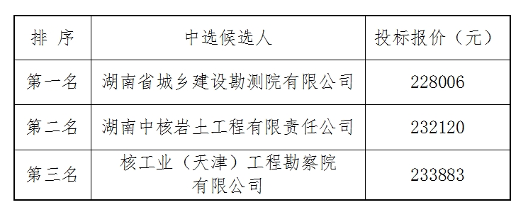 幸福河項目工程竣工測量單位比選于2022年8月3日上午9時00分(北京時間)進行了比選開標、評標活動,評標委員會按照比選文件規(guī)定的評標辦法及原則進行評定,推薦中選候選人排名如下: