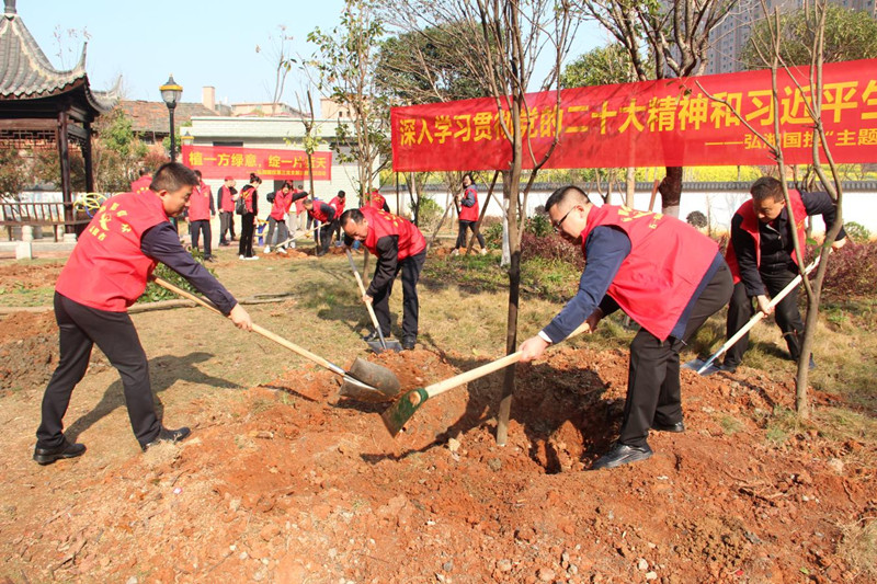 黨建“紅”引領(lǐng)生態(tài)“綠”,弘湘國(guó)投開展 “主題黨日+學(xué)雷鋒”植樹活動(dòng)