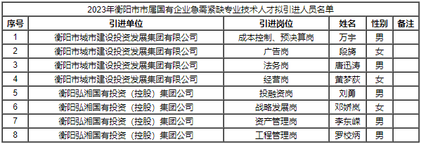 2023年衡陽市市屬國有企業(yè)急需緊缺專業(yè)技術(shù)人才擬引進人員名單公示
