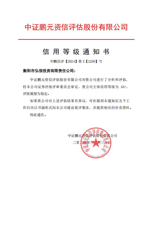 衡陽(yáng)國(guó)資新增一家AA+信用等級(jí)企業(yè)